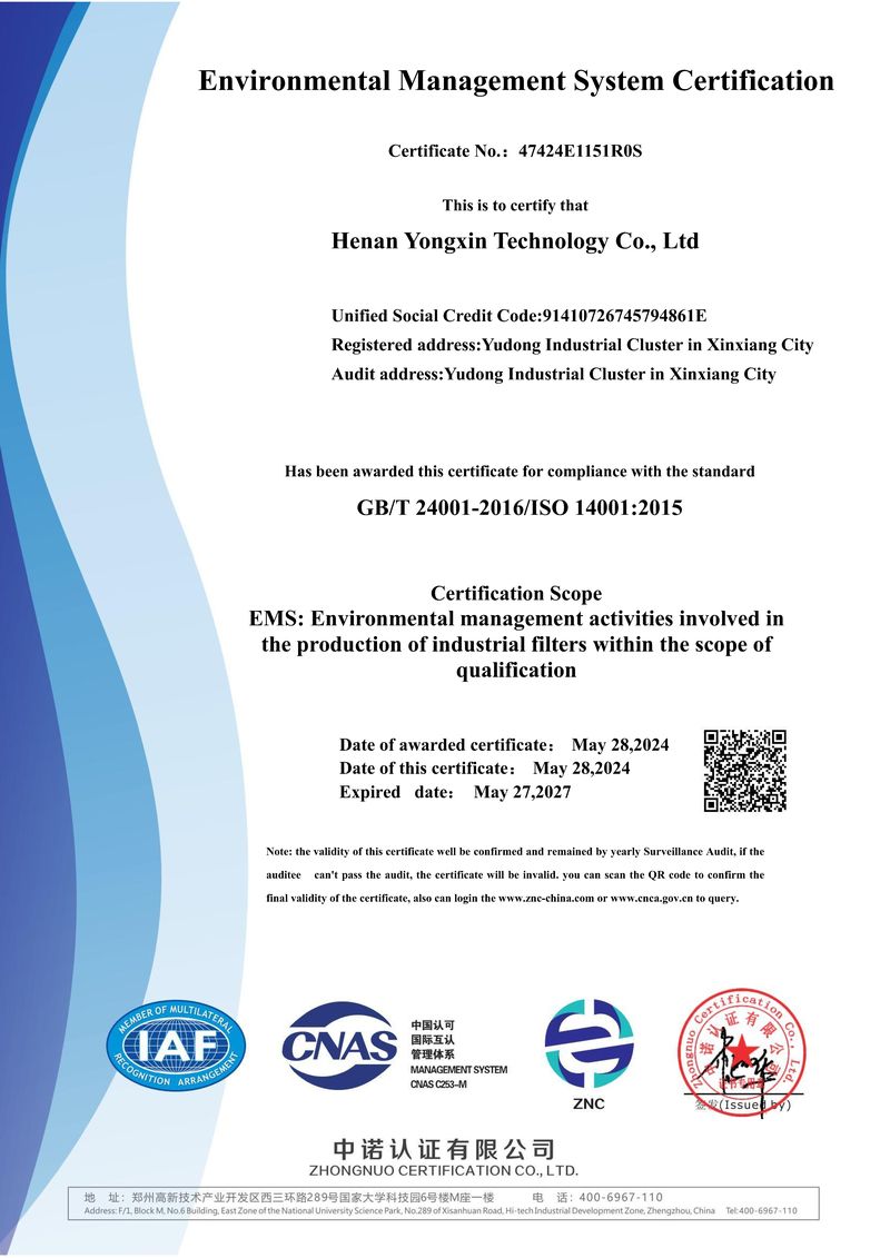 河南永新科技有限公司坐落于“豫北明珠”—新乡,豫北的经济、文化、教育、交通中心,交通枢纽城市。我公司是掌握核心膜材料、从事过滤与分离技术的研发设计制造的。公司通过了ISO9001质量管理体系、ISO14001环境管理体系、ISO45001职业健康安全管理体系认证、GB/T 23001两化融合管理体系,是中国膜工业协会会员单位。拥有多项**(发明**号ZL201910694018.9、ZL201910694012.1),并与中南大学粉末冶金研究院、北京科技大学等大专院校和科研院所建立起紧密的横向技术合作与联系。公司先后完成了无机陶瓷膜、金属粉末烧结膜的研发与量产,可以从烧结滤材的生产制造,到各种滤器(芯)的加工成型,以及各种过滤系统的设计与制造的生产厂家。通过多年的不断的创新与积淀,公司产品已在冶金、炼化、精细化工、煤化工、化纤、水处理、制药、发电、造纸、机械等行业里得到广泛应用。